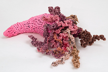 Material Nature is a collection of tactile woven forms inspired by microscopic ocean creatures. With some 20,000 types of organisms in a liter of seawater, there are many beautiful forms to draw from. A continued exploration of material, crocheted plastic bags, has produced enlargements of life supporting organisms.